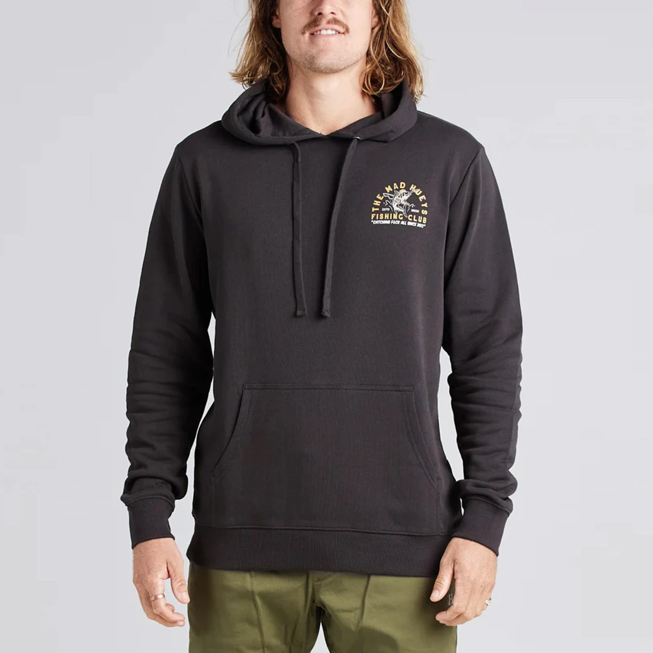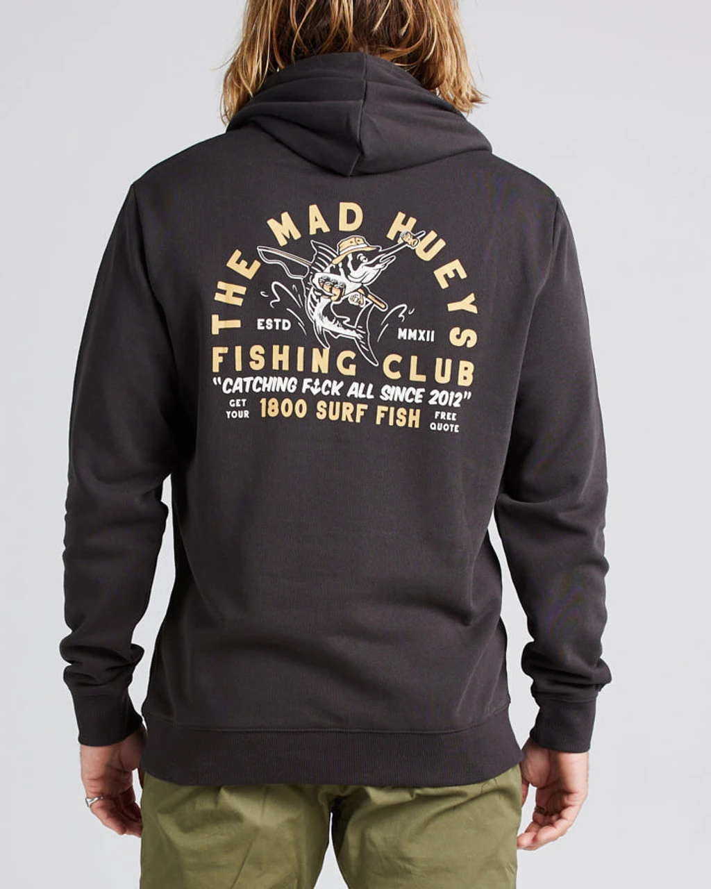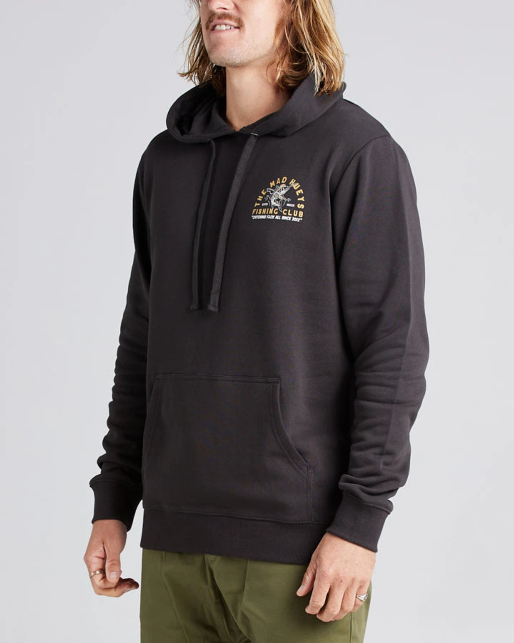 Mad Hueys Fishing Club Pullover Hoodie Mens in Vintage Black