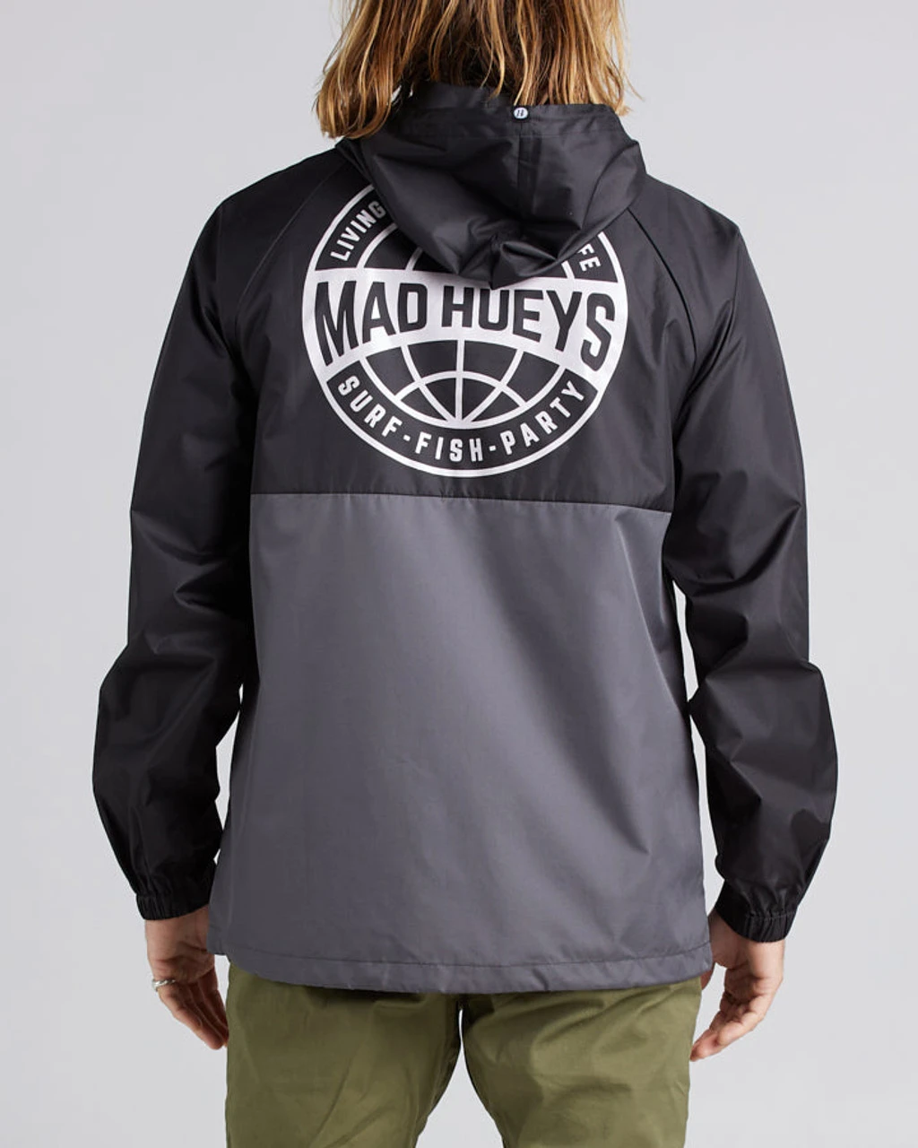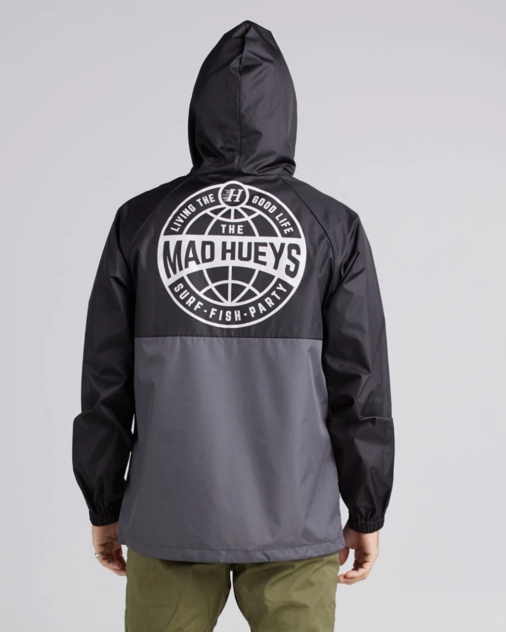 Mad Hueys Hueys Global Pullover Spray Jacket Mens in Black Char