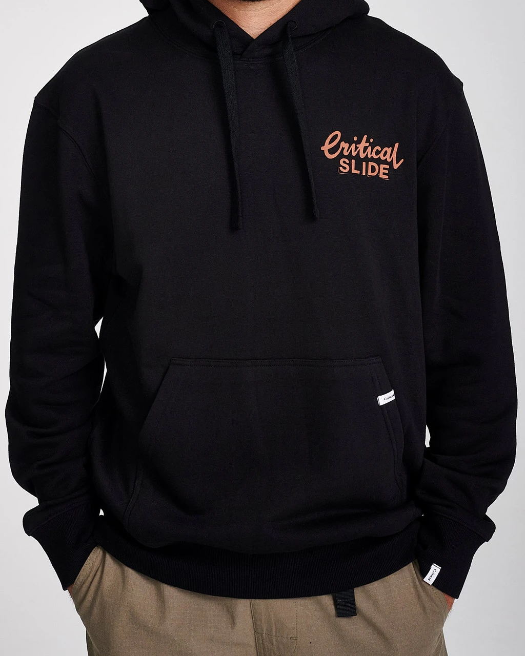 The Creator Hooded Fleece is made from a 320g 100% Cotton Brushed Cotton Fleece. Featuring an Critical Slide logo lock up on front breast and back. Fit is slightly boxy. Our model is 6′ and is wearing a size Large. We recommend you take your usual size.
